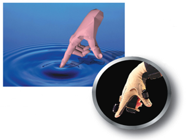 CyberTouch features small vibrotactile stimulators on each finger and the palm of the CyberGlove. Each stimulator can be individually programmed to vary the strength of touch sensation. The array of stimulators can generate simple sensations such as pulses or sustained vibration, and they can be used in combination to produce complex tactile feedback patterns. Software developers can design their own actuation profile to achieve the desired tactile sensation, including the perception of touching a solid object in a simulated virtual world.