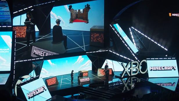 微軟花了25億(yì)美元收購Minecraft開發商Mojang,第一款麵向Hololens的Minecraft遊戲可以讓你在實體桌(zhuō)麵上投放圖(tú)像,操作很簡單,你隻需(xū)要說一句“給(gěi)我創造一個世界”就行了。隨後你就可以用手來操作項目和(hé)角色。當你(nǐ)完成(chéng)這一切時(shí),其它人可以同時利用微軟Surface平板沉浸在Minecraft世界中。
