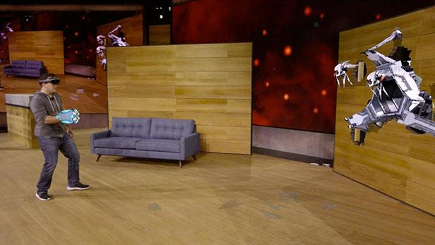 如果用HoloLens玩遊(yóu)戲效果如何?微軟(ruǎn)正在開(kāi)發,在2015年的E3發布會上,微軟(ruǎn)演示了所謂的混合現(xiàn)實(shí)遊戲。